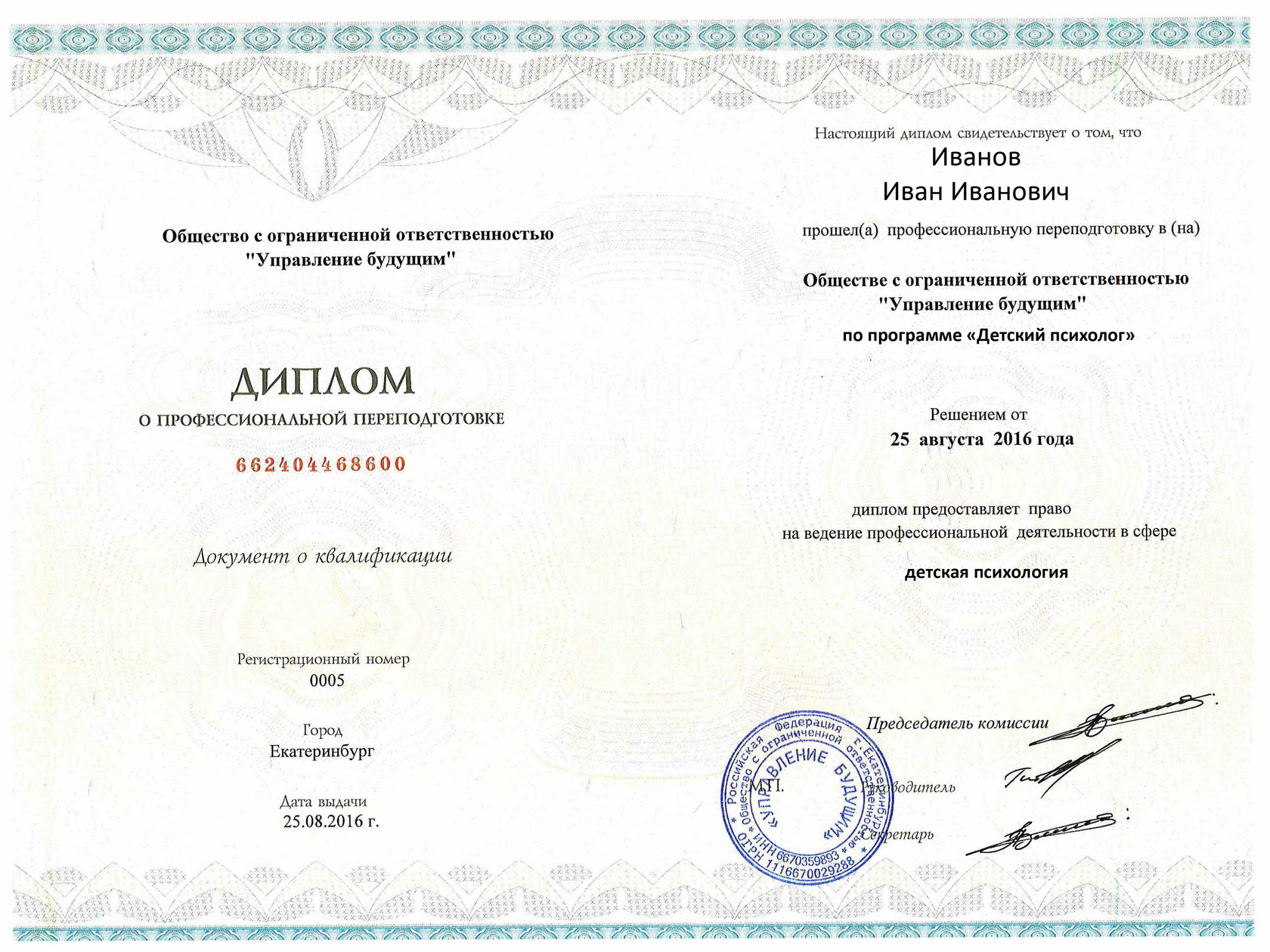 Диплом о профессиональной переподготовке (программа обучения свыше 250 ак.ч)